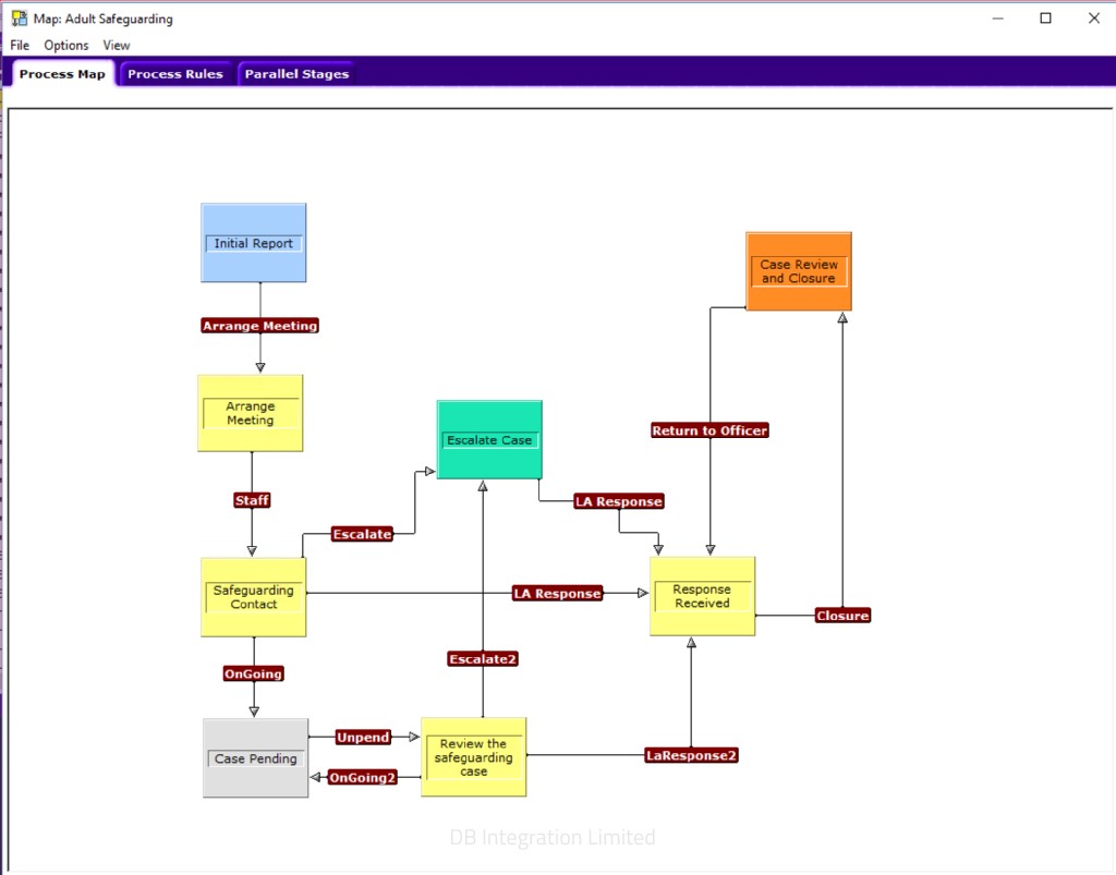 A Contact Manager workflow to facilitate the processing of a safeguarding case.